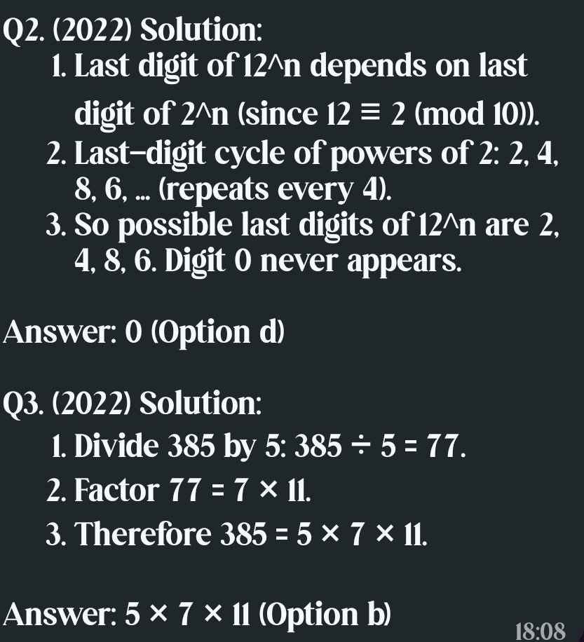 Q2. (2022) If n is any natural number, then 12^n cannot end with the digit: